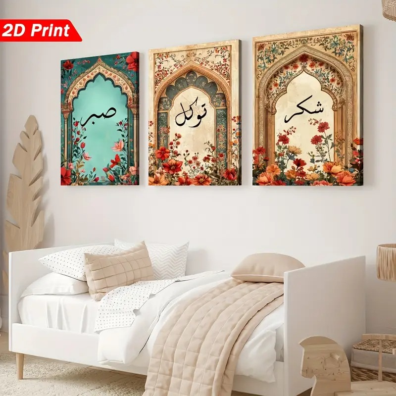 Add a touch of faith and elegance to your home with this beautiful Islamic Calligraphy Art Print Set 🕌💫. Featuring the powerful words Sabr (Patience), Tawakkul (Trust in Allah), and Shukr (Gratitude), this set is a perfect reminder of inner peace and spiritual strength 🤲💖.