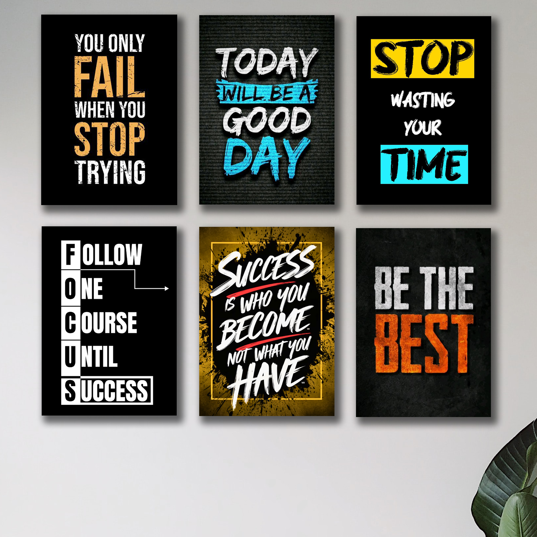 Features motivational quotes and stylish artwork that bring positivity and creativity to your interior décor.